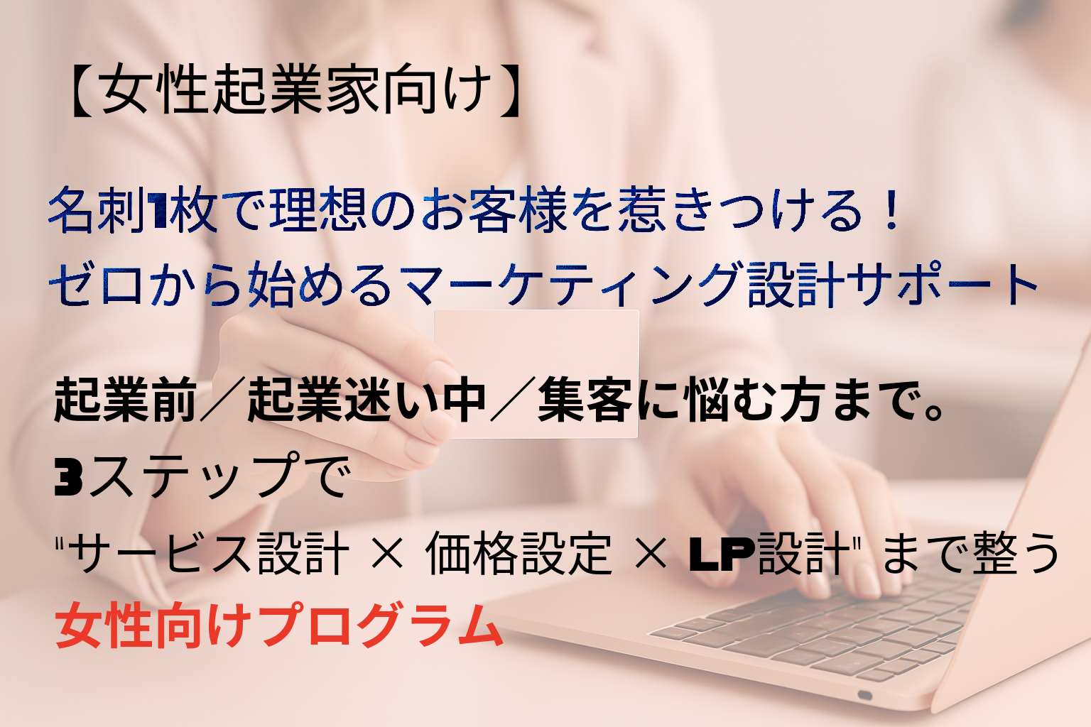 「どんなサービスを作るか」「誰に届けるか」「いくらにすればいいか」 迷いや不安があっても、本プログラムが“設計の土台”を一緒につくります。